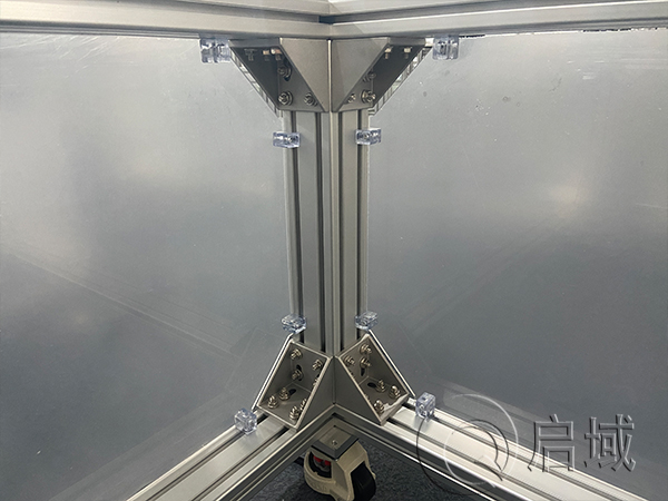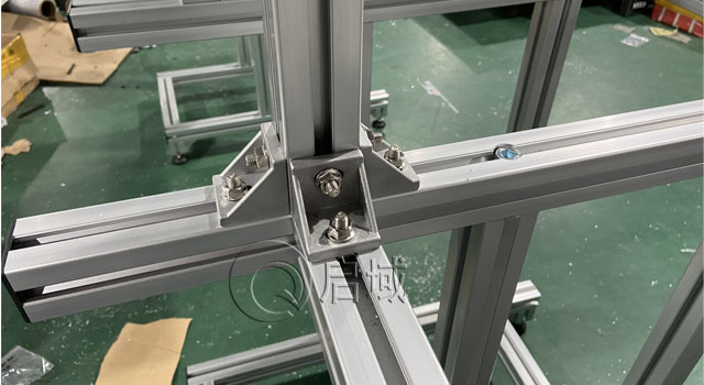 一、角件,这款配件材质是压铸铝,在框架组装时 没有外观和板材安装时,它就是选择在前,使用这款配件,它是需要搭配螺栓螺母,经常搭配的就是T型螺栓+法兰螺母。下面是安装实际案例,大家可以参考一下。